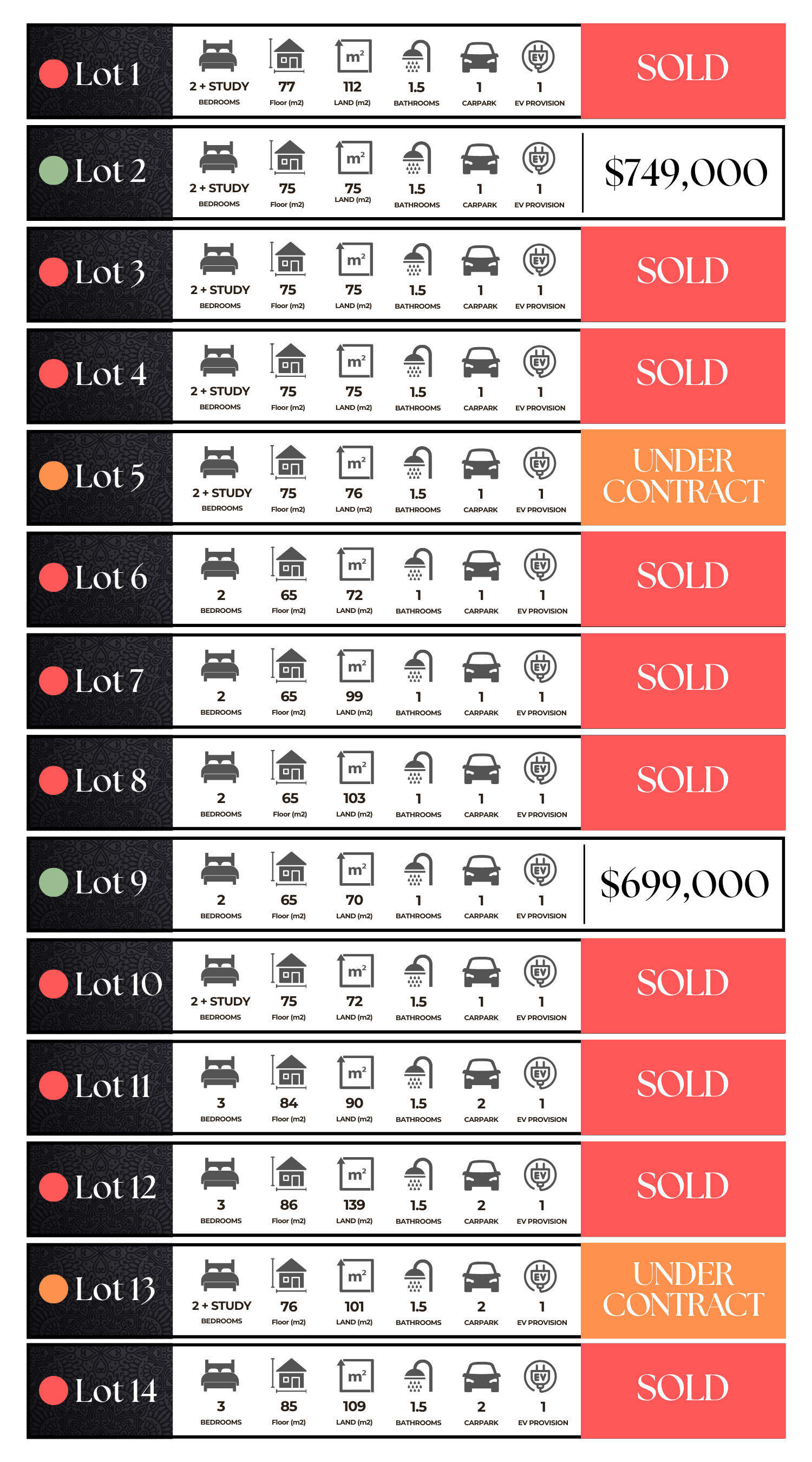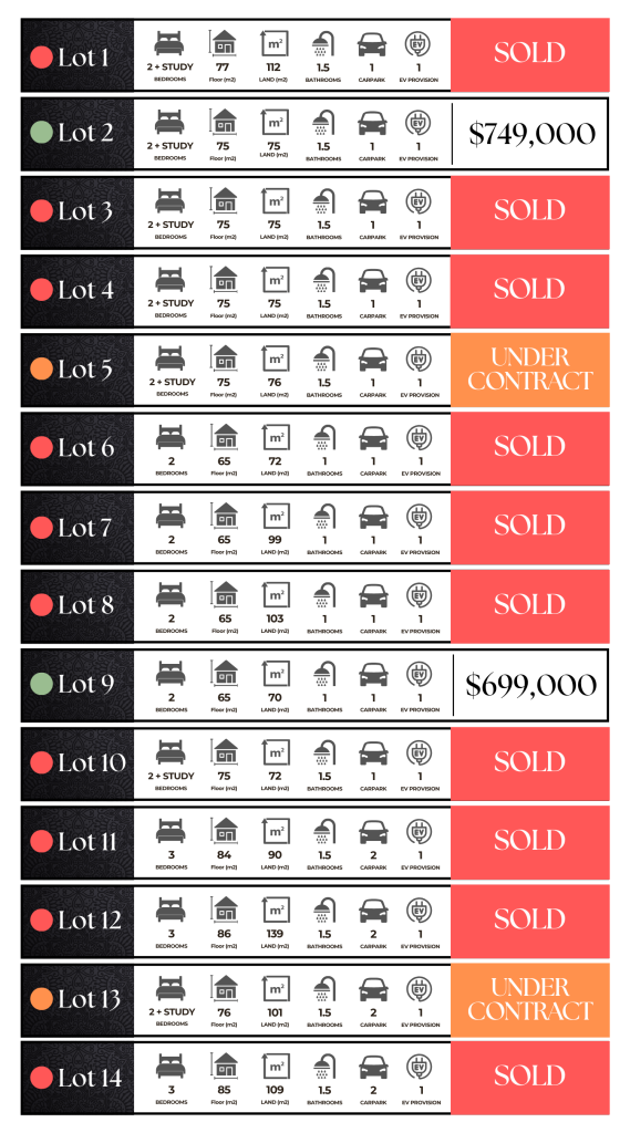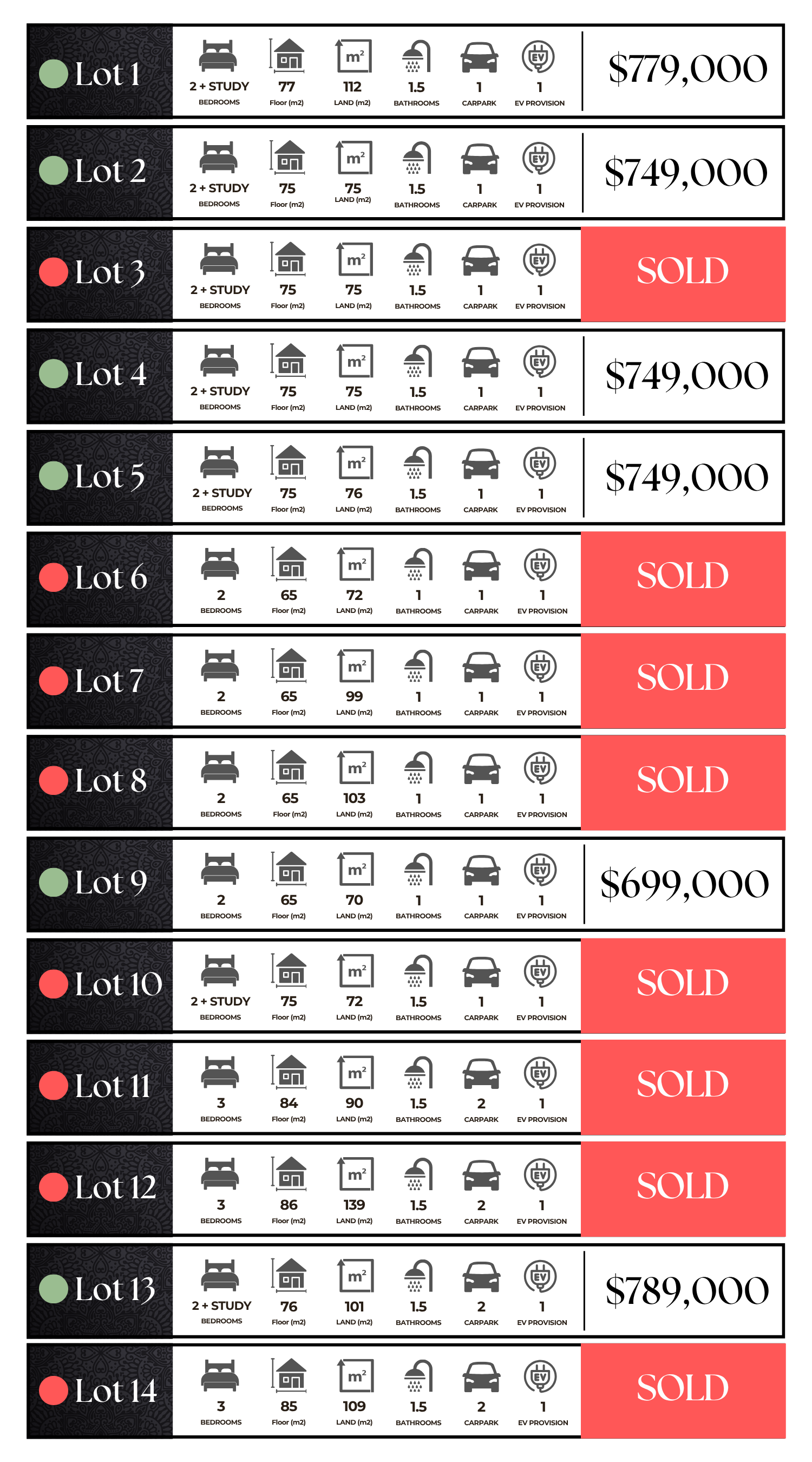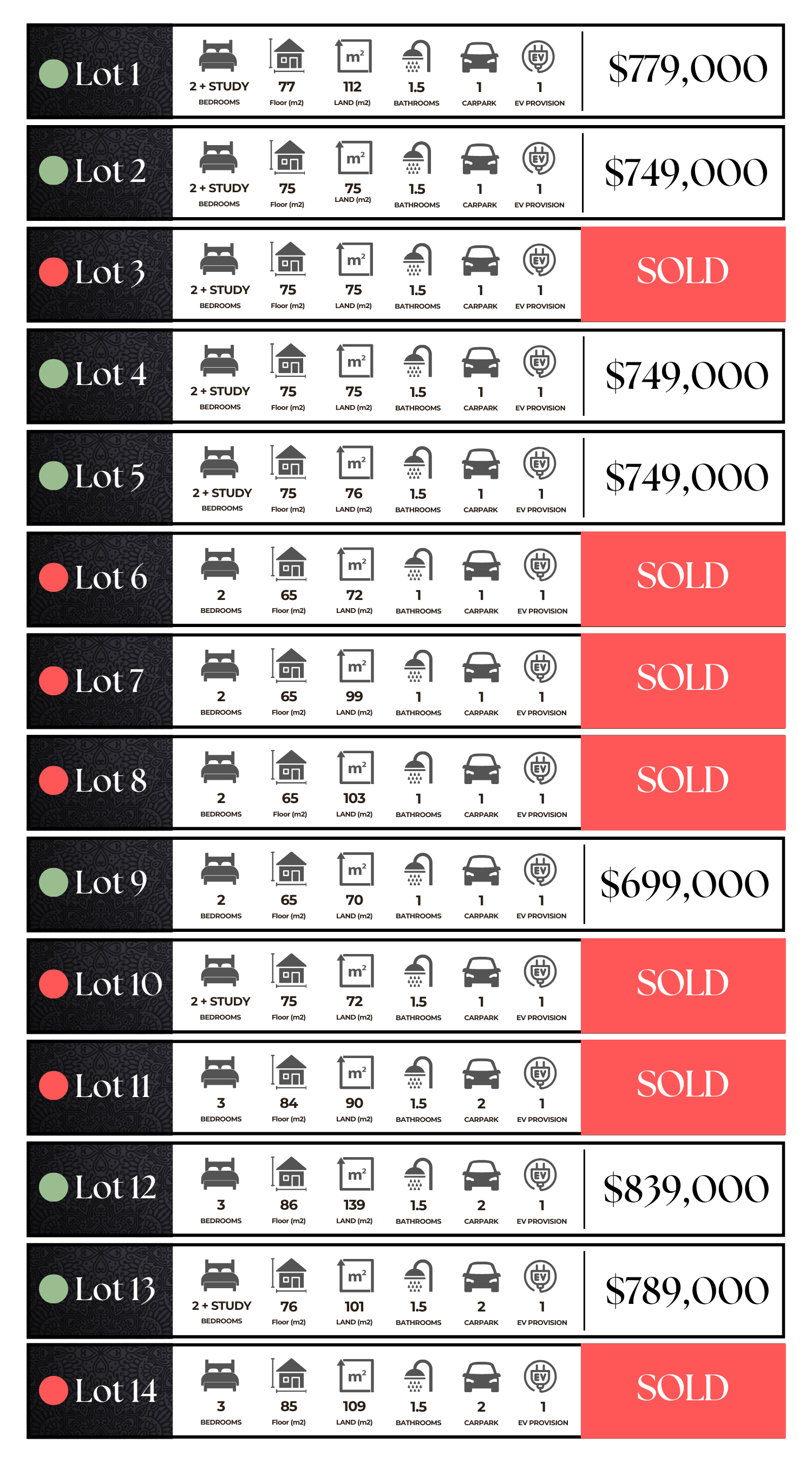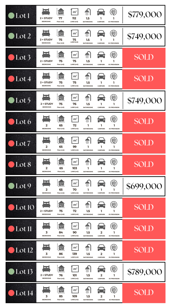 Each open-plan kitchen is designed for style and functionality, featuring a choice of three kitchen selections, an engineered stone benchtop with overhang breakfast bar, under-kitchen storage, top-of-the-line Bosch appliances, and soft-close cabinetry for a seamless cooking experience.