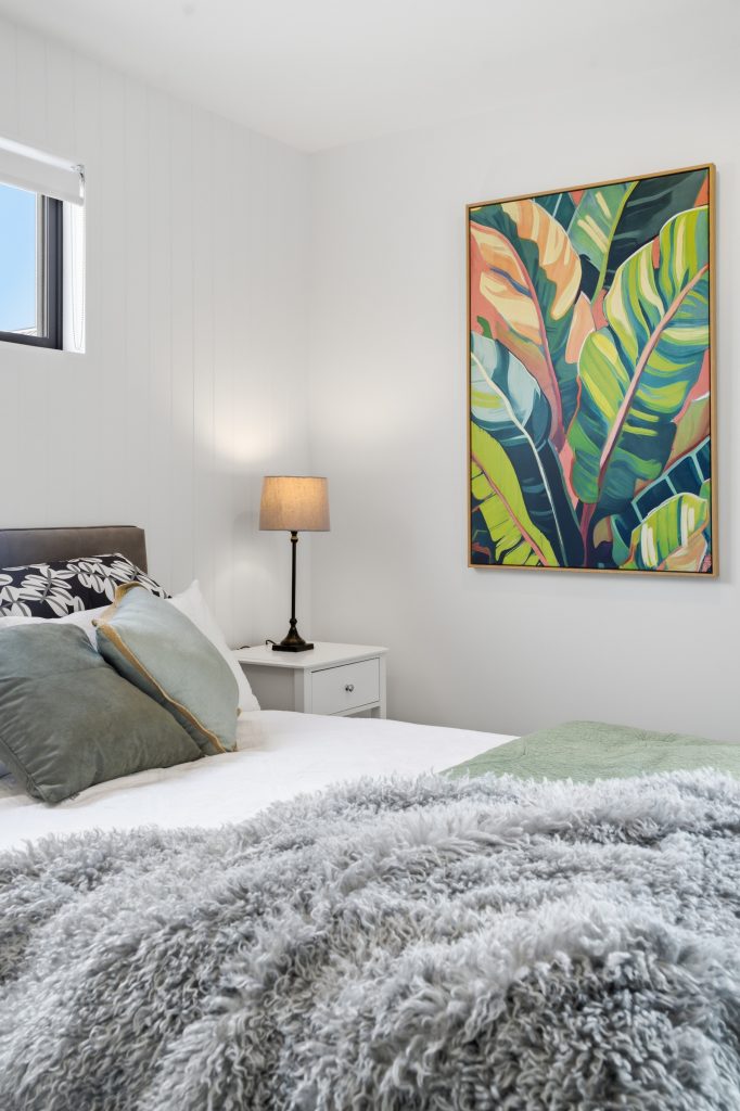 Designed for comfort and functionality, the bedrooms feature a stylish V-Groove feature wall, large windows with abundant natural light, double wardrobes, and an optional heat pump upgrade for year-round comfort.